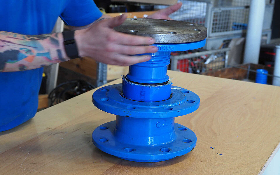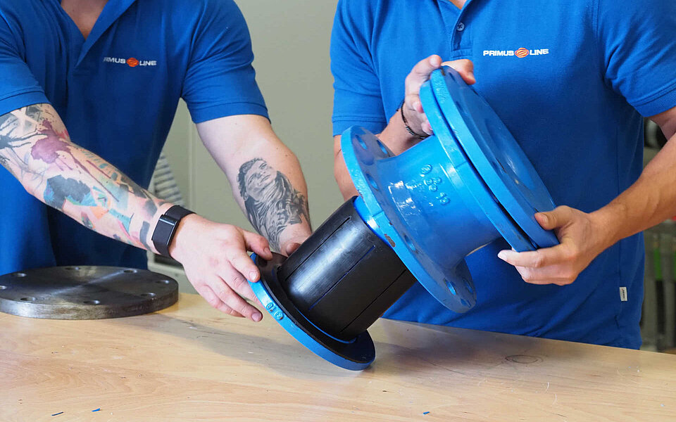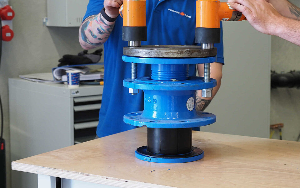 Die Montage der Q-Verbinder von Primus Line erfolgt vergleichbar zur Montage der M-Verbinder. Dazu werden temporäre Flansche zu Hilfe genommen.