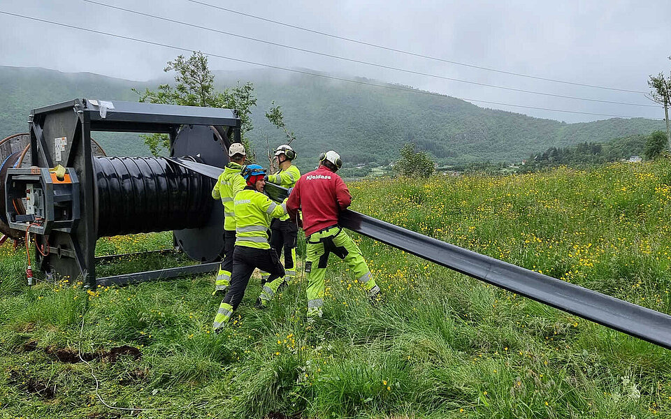 Der Liner wird auf einer Transporttrommel angeliefert. Mit einer Seilwinde, einem Minibagger oder direkt von einem Lkw aus erfolgt die Verlegung im Gelände. Im Vorfeld muss das Gelände auf scharfe Gegenstände überpüft werden.