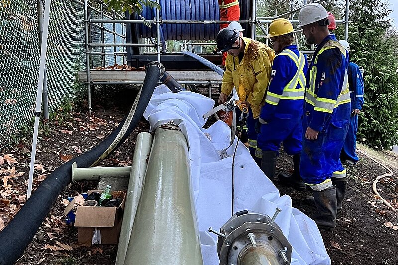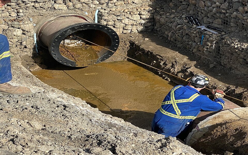 In 2020, a renowned Canadian oil producer had been investigating for a reliable temporary solution to bypass an old buried 36” pipe used for emptying an effluent/produced water basin on a frequent basis. The operator was looking for a solution to allow to keep operation going before finally replacing the existing steel pipeline.