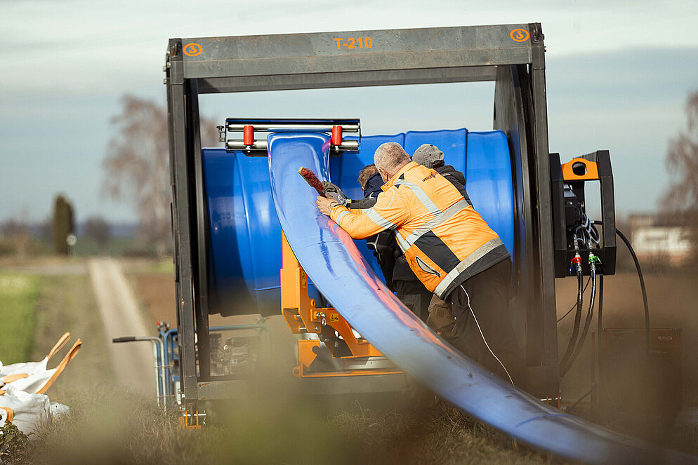 Die von uns neu entwickelte Trommeleinheit ermöglicht es, unsere Liner im Fall von Bypass- oder Notfallanwendungen nicht nur abzurollen, sondern zur Wiederverwendung auch wieder aufzuwickeln.