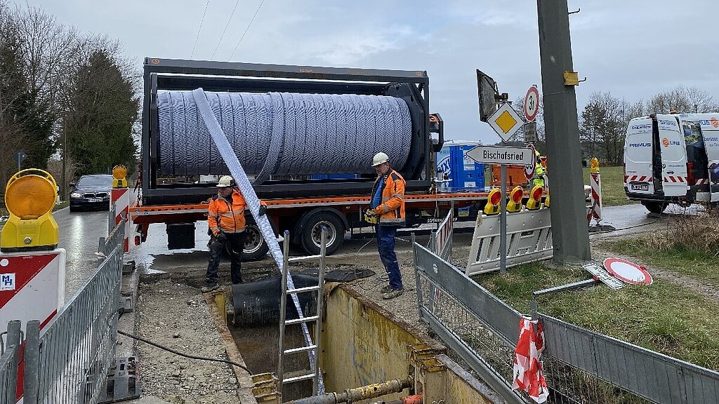 Die Trinkwasserleitung DN 300 GGG verläuft entlang einer vielbefahrenen Staatstraße Richtung Ortskern und musste aufgrund ihres Alters und der zunehmend auftretenden Korrosion saniert werden. Gefordert war eine grabenlose Druckrohrsanierung in Form eines selbsttragenden Liners mit langer Installationslänge von über einen Kilometer und einer Bogengängigkeit von bis zu 45°.