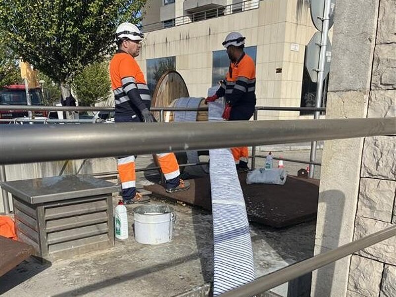 Als technische Lösung kam das Primus Line® System zum Einsatz. Der aramidverstärkte Primus Liner ist flexibel genug, um alle 16 aufeinanderfolgenden 30°-Bögen zu durchfahren und gleichzeitig den Betriebsdruck aufzunehmen. Zum Lieferumfang gehörten der Primus Liner DN 350, die entsprechenden Verbinder sowie die Bauaufsicht vor Ort. Nach der Installation wurde der Liner mit Druckluft aufgestellt und bildete so ein durchgehendes Rohr, das den Betriebsdruck aufnimmt, ohne das Altrohr statisch zu belasten. Auf diese Weise konnte die Leitung erneuert werden, ohne die historische Brücke zu beeinträchtigen.