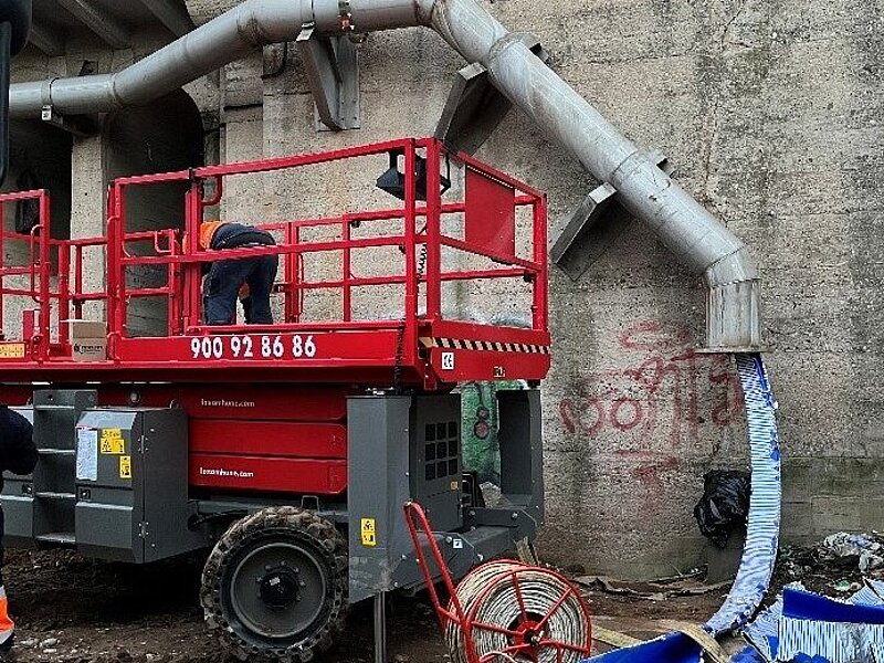 Die zentrale Herausforderung ergab sich aus der Kombination von baulichen Einschränkungen und der Leitungsgeometrie. Aufgrund der strikten Vorgaben zum Schutz der Brücke kamen konventionelle Reparatur- oder Sanierungsmethoden nicht infrage. Gleichzeitig wies die Trasse innerhalb der nur 150 Meter insgesamt 16 aufeinanderfolgende Bögen von jeweils 30 Grad auf. Dies führte zu erhöhten Widerständen und schloss bereits auch viele grabenlose Verfahren aus. Da die Leitung freihängend installiert ist, mussten die Einzugskräfte zudem genau kontrolliert werden, um ein Anheben oder Beschädigen des Altrohres zu vermeiden. Das Altrohr bestand aus Stahl, der Betriebsdruck betrug 11 bar, und die Sanierung durfte keine zusätzlichen Lasten in die bestehende Struktur einleiten.
