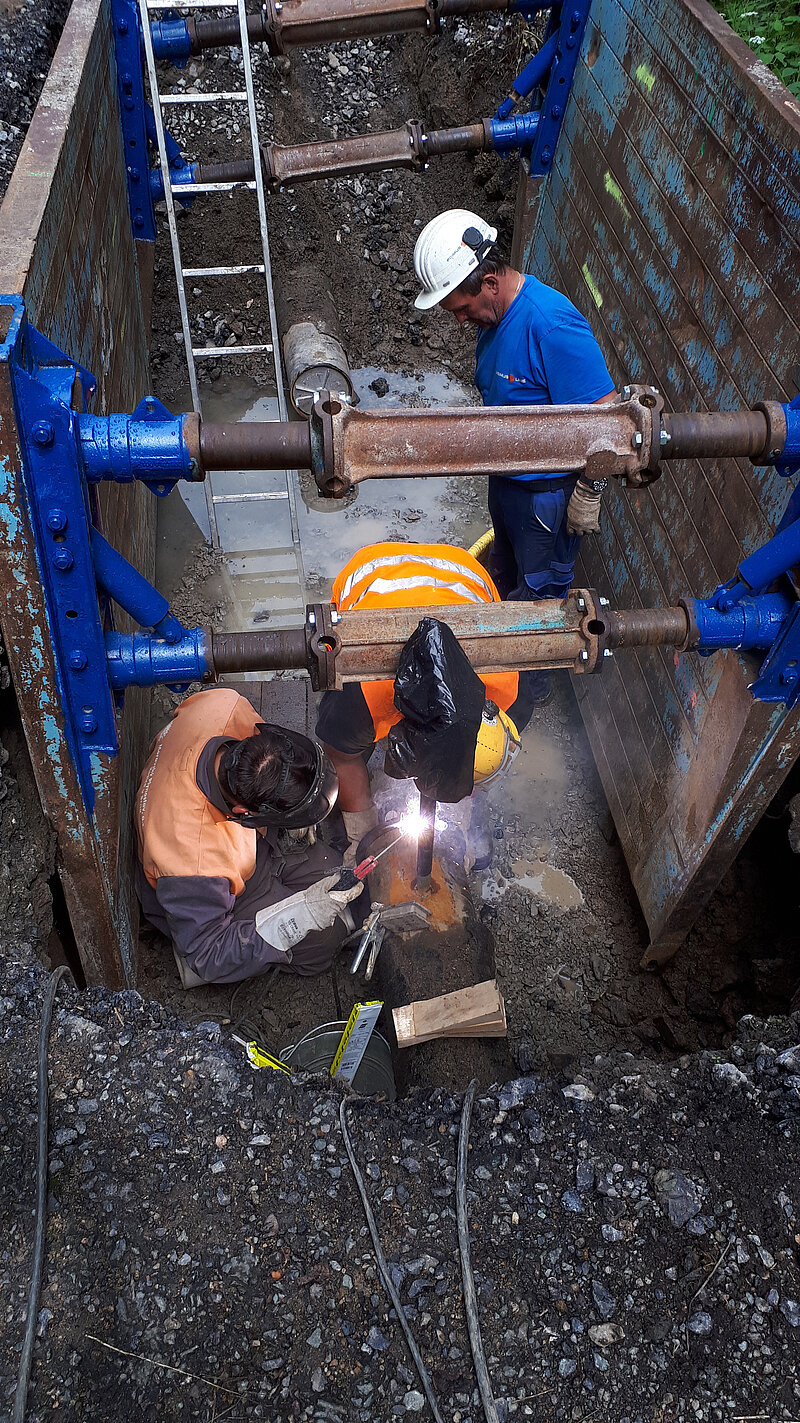 On preparing the installation of the Primus Line® system in 2018, the Czech construction company created access points to the forest and the pipeline, laid a bypass, cleaned the pipeline and removed wrongly made welding seams protruding into the inner diameter of the host pipe by using a cutter. Before the installation, a calibration pig was pulled through the host pipe.